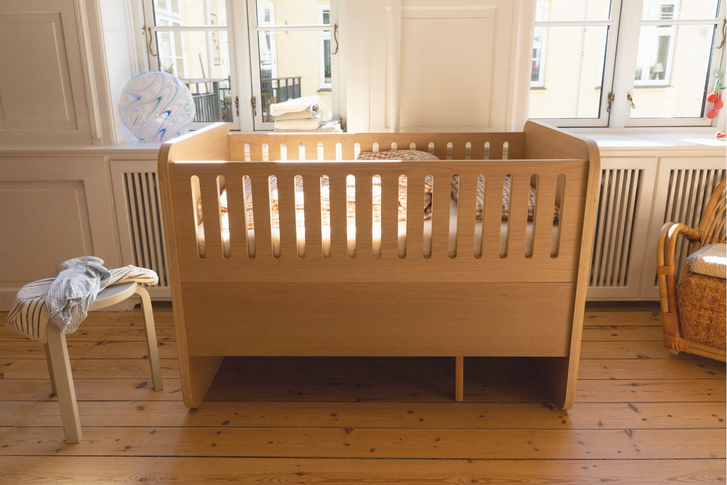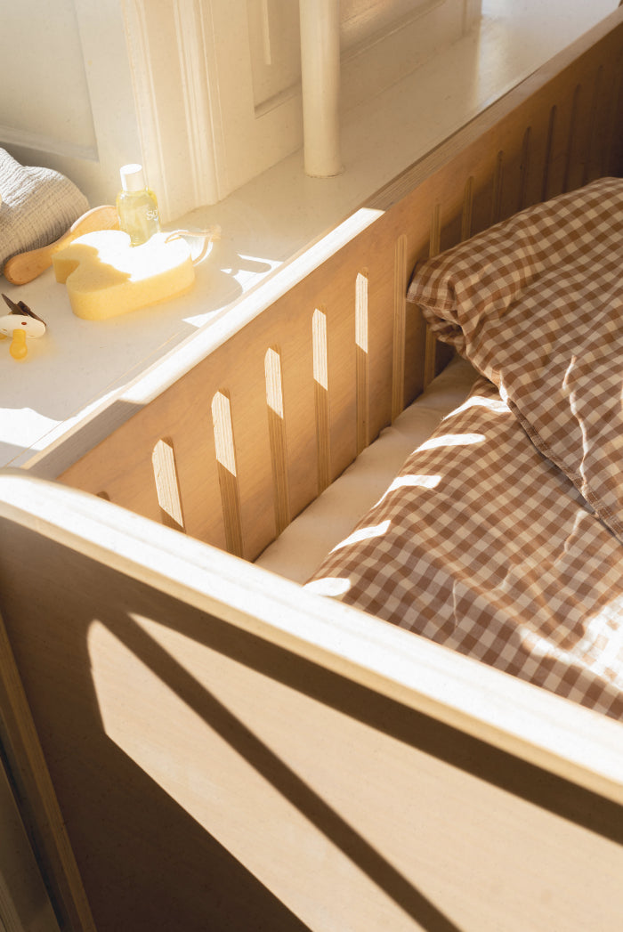 The baby and junior Bed is a Danish-designed future classic, offering a modern, functional design for both baby and junior stages in one. This bed grows with your child thanks to its adjustable base and integrated pull-out feature, making it suitable from infancy to junior years. It supports up to 15 kg in the baby bed base setting and 80 kg in the junior setting.