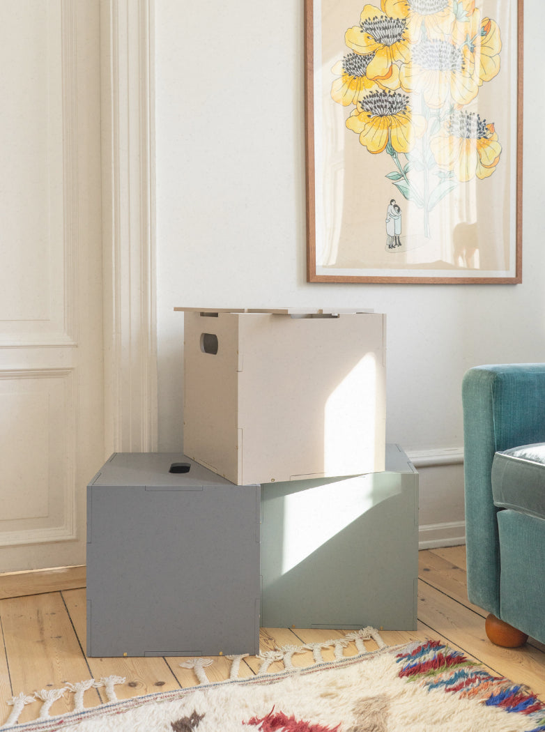 Portable storage box in a simple wood design with wheels that can quickly tidy away your child's toys in the living room or kids room. Use it in the hallway for storing coats and shoes. It helps the child easily assist with tidying up at home and is easy to unpack when playtime begins again the next day.