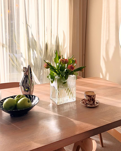 Des tapis moelleux, des meubles bas et des tons naturels créent une ambiance chaleureuse et accueillante. Nous mélangeons l'ancien et le nouveau, et les œuvres d'art des enfants aux murs nous donnent un sentiment d'appartenance.